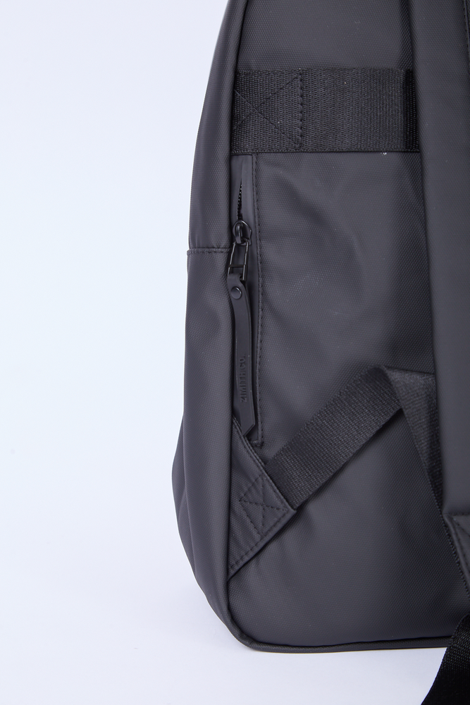 Mochila con portanotebook. Apta para sujetar en carry on. Bolsillo en parte trasera "escondido" para elementos valiosos. Cierre central reverso. Cierres de bolsillos a prueba de agua. Tiracierres personalizados. Aplique tipo gomita en frente. Forro personalizado. 30CM X 12.5CM X 41CM 100% POLIÉSTER.