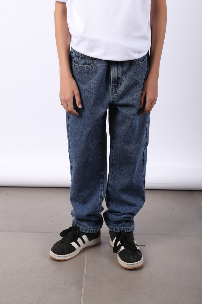 Pantalon de jean. Desgaste con lavado. Bolsillos delanteros. Bolsillos traseros. Detalle bordado. Estampa en interior de bolsillo. Avios personalizados. Etiquetas y badana de marca. RELAXED FIT. DENIM.