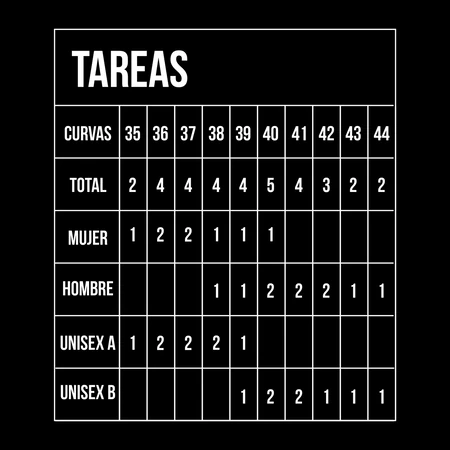 Talla 34 - 23,4 cm / Talla 35 - 24,0 cm / Talla 36 - 24,4 cm / Talla 37 - 25,2 cm / Talla 38 - 25,9 cm / Talla 39 - 26,6 cm / Talla 40 - 27,4 cm / Talla 41 - 28,0 cm / Talla 42 - 28,6 cm / Talla 43 - 29,0 cm / Talla 44 - 30,0 cm.