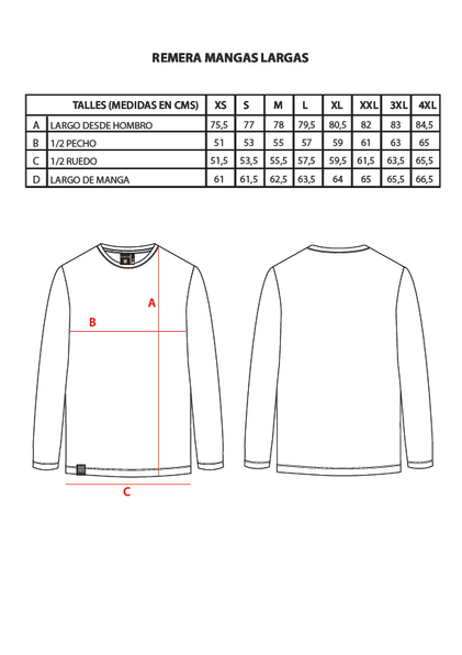 Remera mangas largas. Estampa serigráfica en altura, a un color, en frente y espalda. JERSEY 24/1 - 100% ALGODÓN.