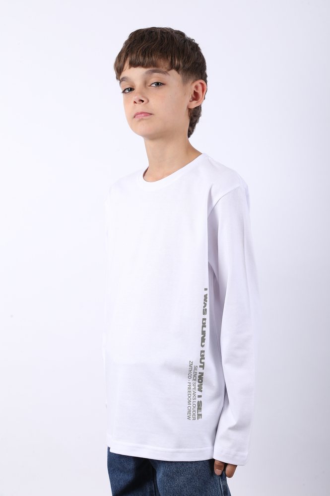 Remera mangas largas. Estampa serigráfica a un color en frente y espalda. JERSEY 24/1 - 100% ALGODÓN.