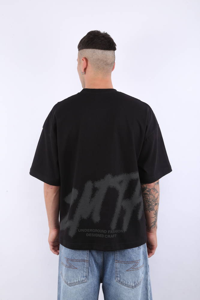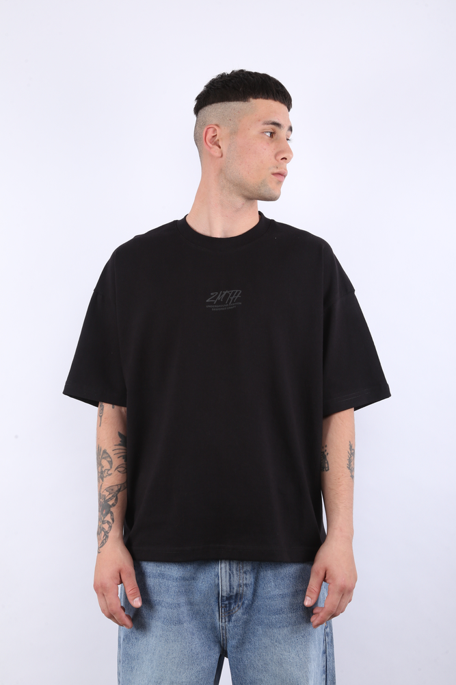 Remera mangas cortas boxy. Estampa serigráfica plana, a un color, en frente y espalda. JERSEY 16/1. 100% ALGODÓN.