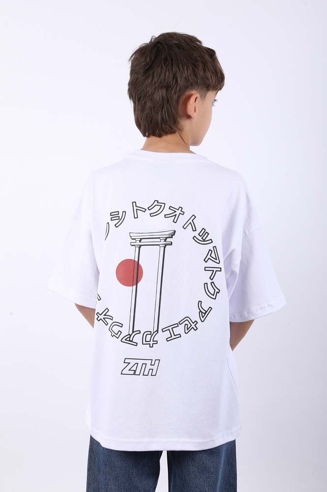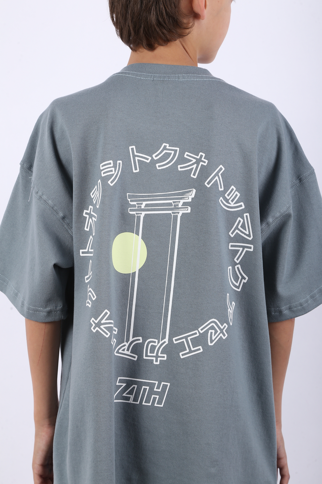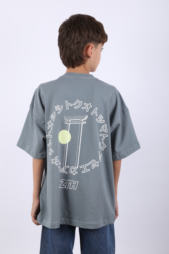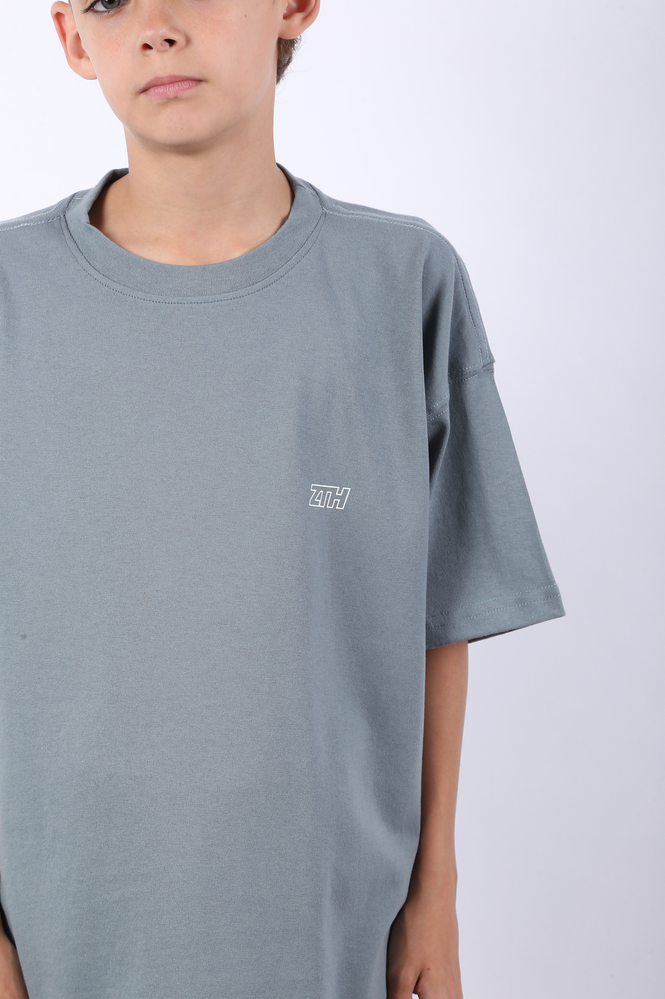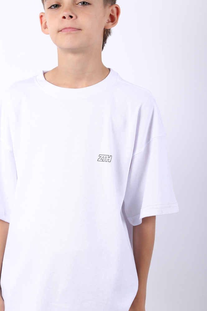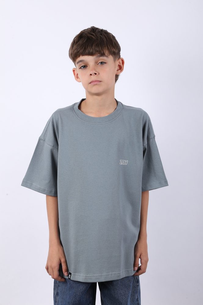 Remera mangas cortas oversize de niño. Estampa serigráfica plana, a uno y dos colores, en frente y espalda. JERSEY 16/1 - 100% ALGODÓN.