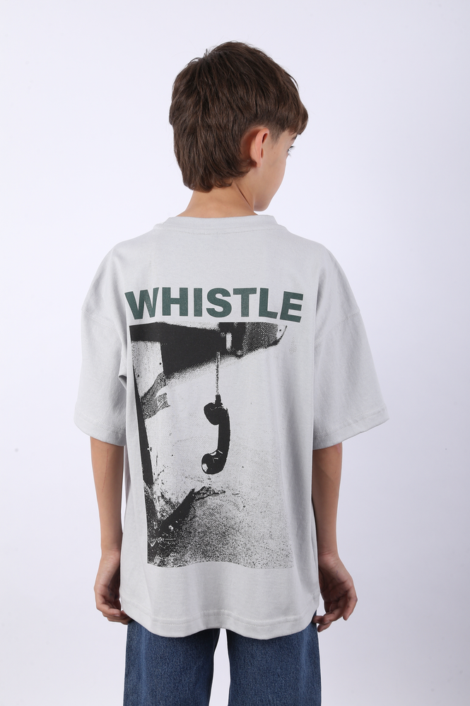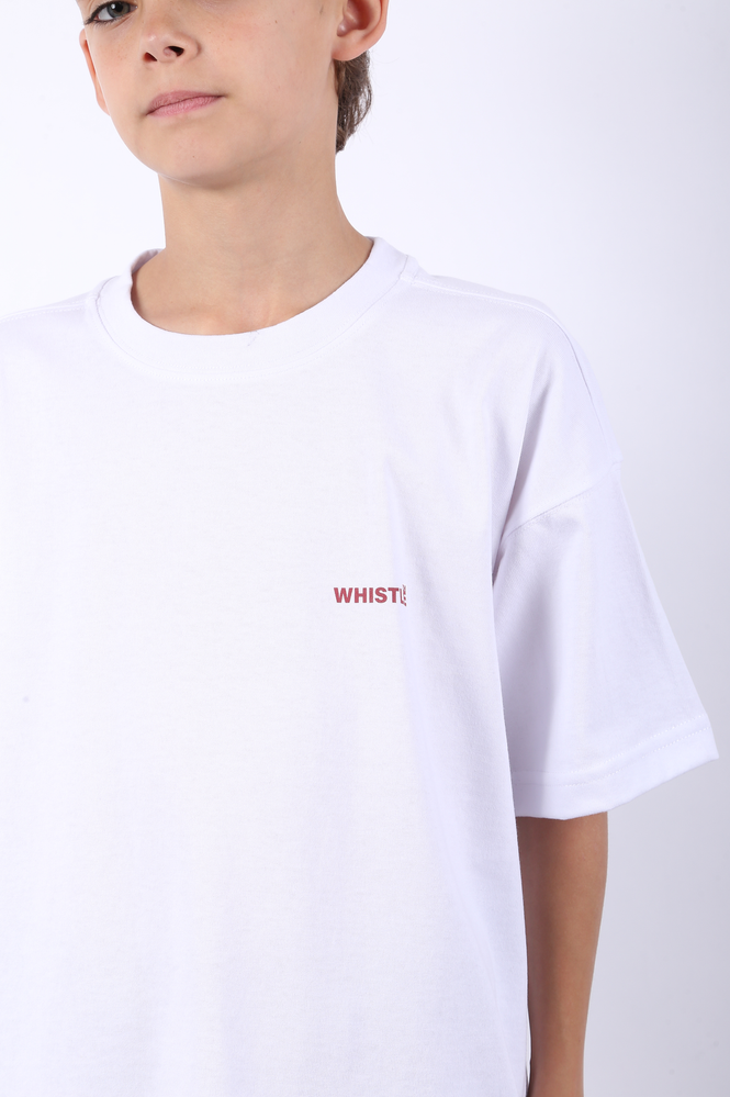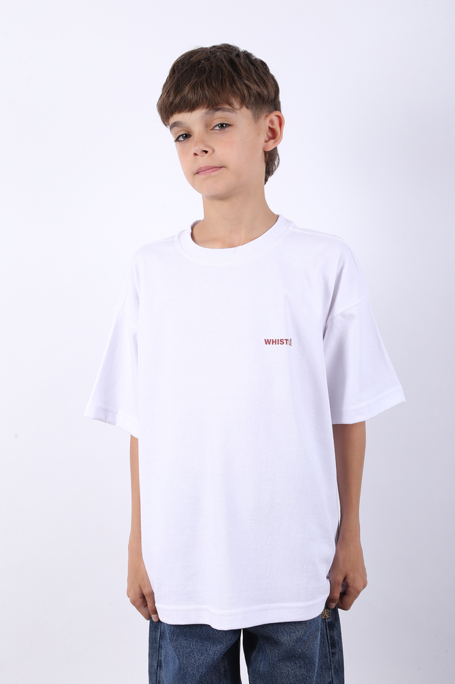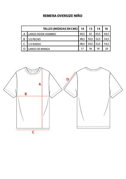 Remera mangas cortas oversize de niño. Estampa serigráfica plana a uno y dos colores, en frente y espalda. JERSEY 16/1 - 100% ALGODÓN.