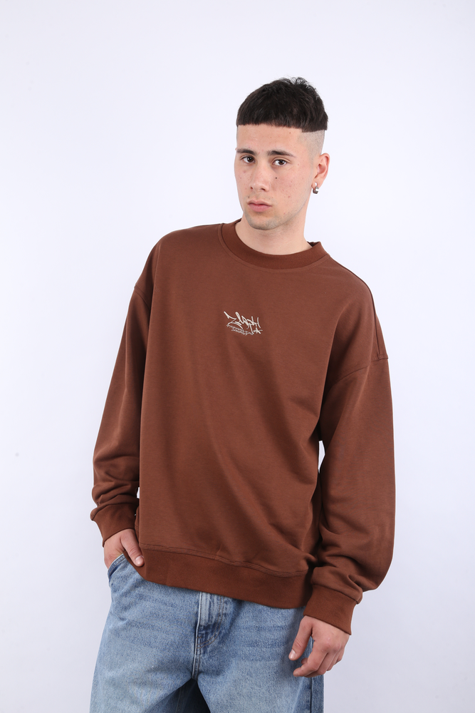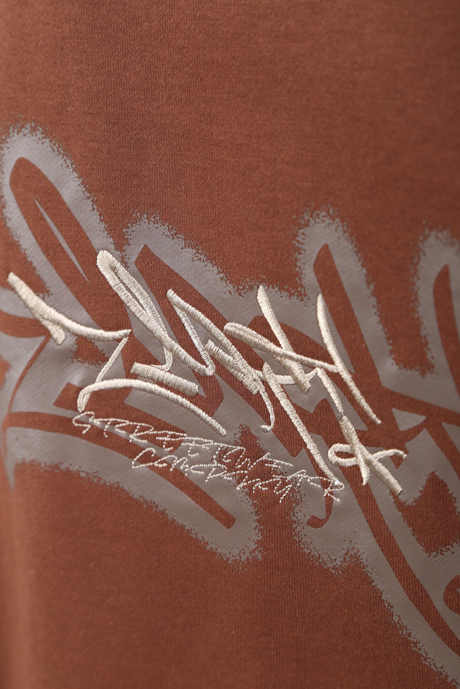 Buzo cuello base. Con recortes en mangas. Logo bordado en frente. Estampa serigráfica y bordado en espalda. RÚSTICO DE ALGODÓN. 60% ALGODÓN - 40% POLIÉSTER.