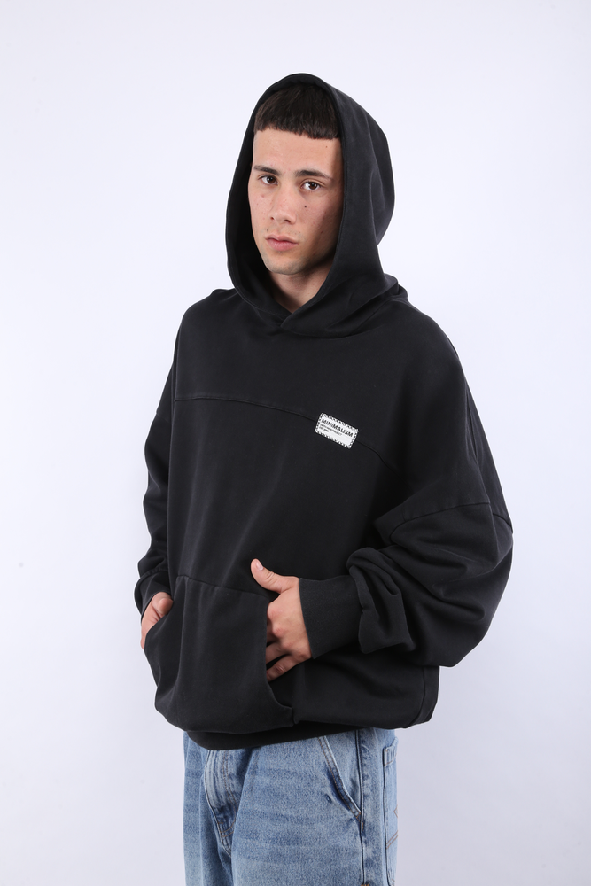 Buzo hoodie. Con recorte horizontal en frente. Etiqueta decorativa, con logo estampado en altura y detalle de costura en zig-zag, en frente. Logo bordado en espalda alta. Etiquetas de marca. FRISA. 60% ALGODÓN - 40% POLIÉSTER.