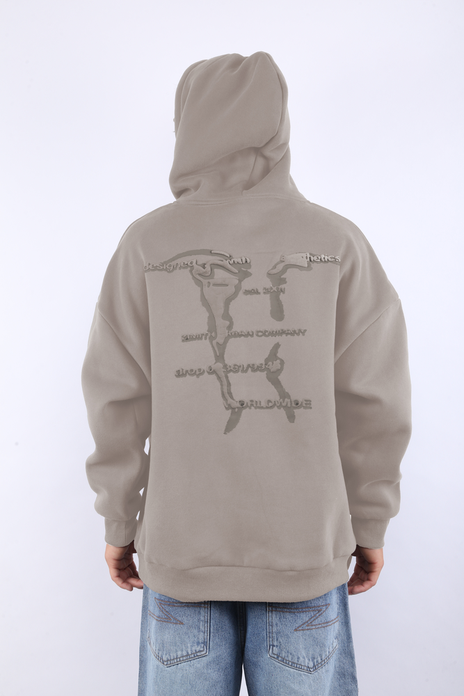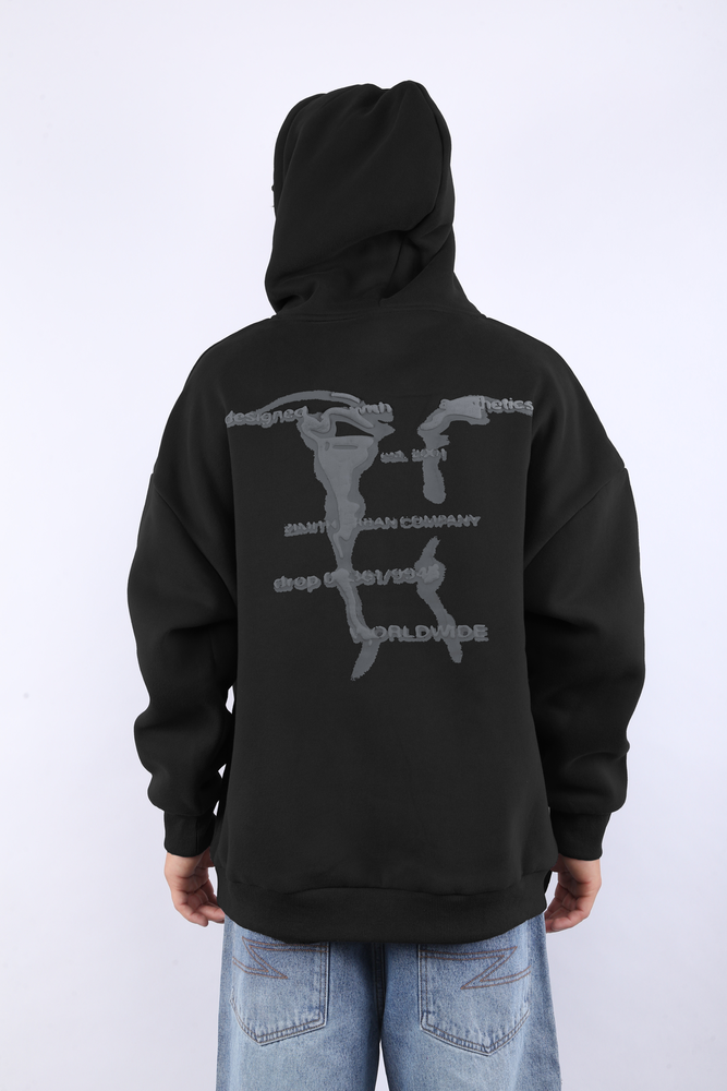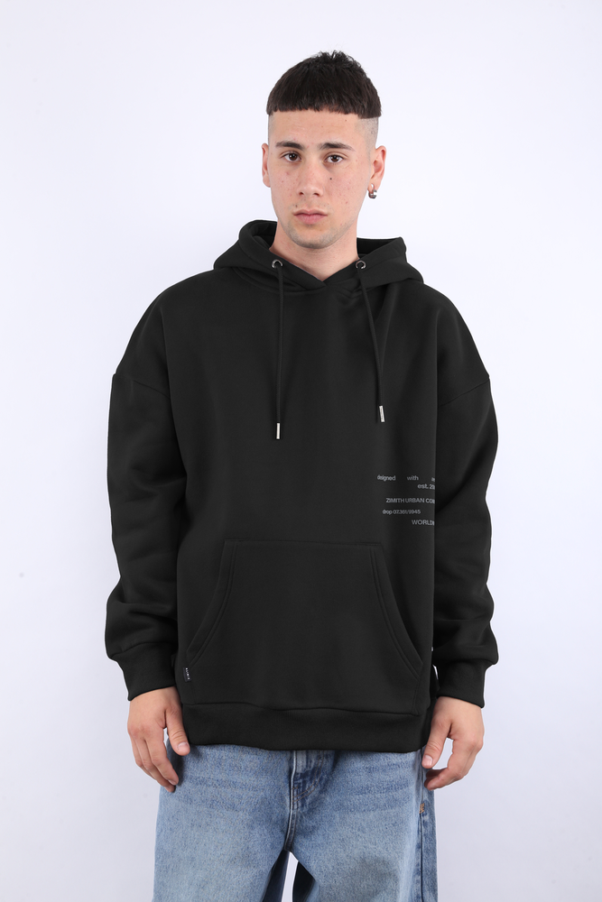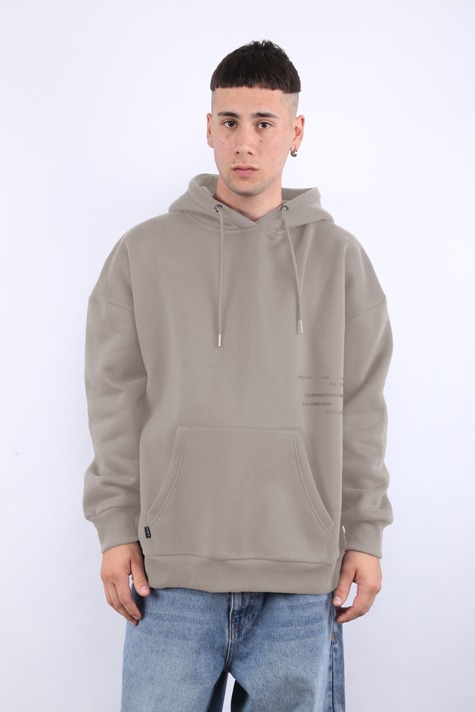 Buzo hoodie. Estampa en altura a un tono, en frente. Estampla plana y en altura, a dos tonos, en espalda. Avíos personalizados. Etiquetas de marca. FRISA. 60% ALGODÓN - 40% POLIÉSTER.