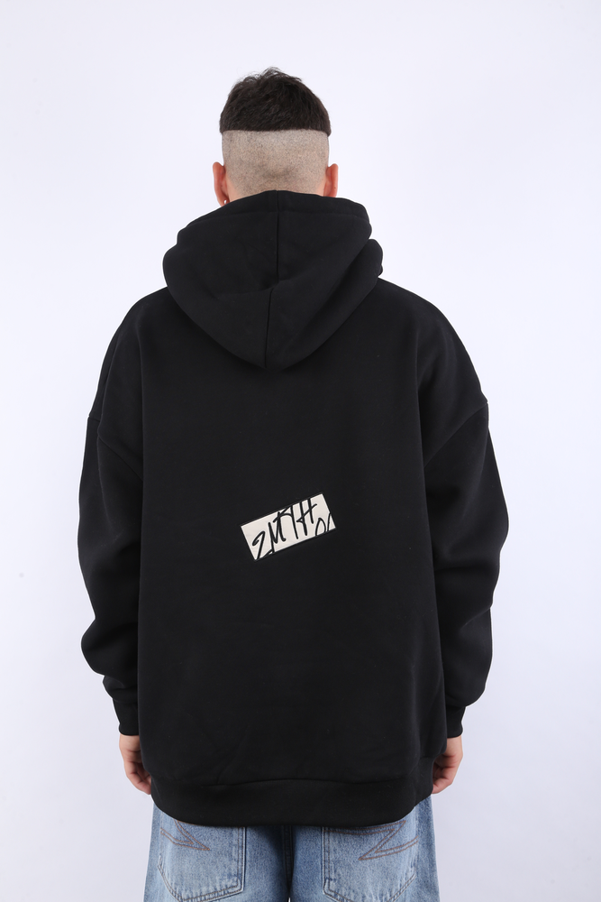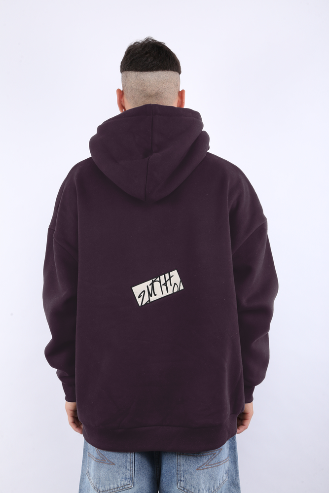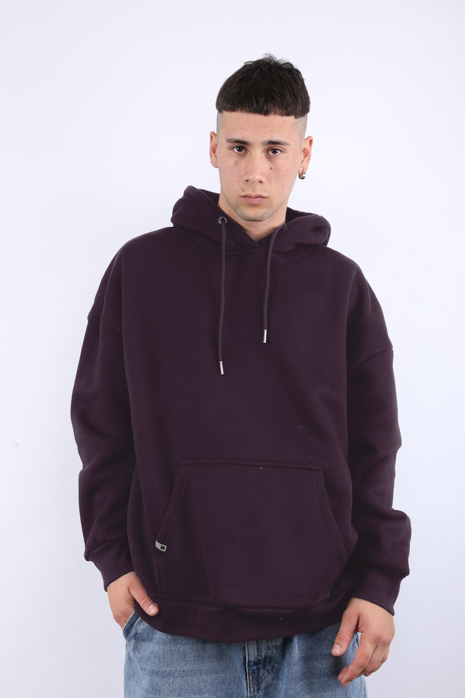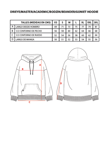 Buzo hoodie oversize. Parche textil con logo en espalda. Etiqueta gross con logo estampado en altura, en bolsillo canguro. Avíos personalizados. Etiquetas de marca. FRISA. 60% ALGODÓN - 40% POLIÉSTER.