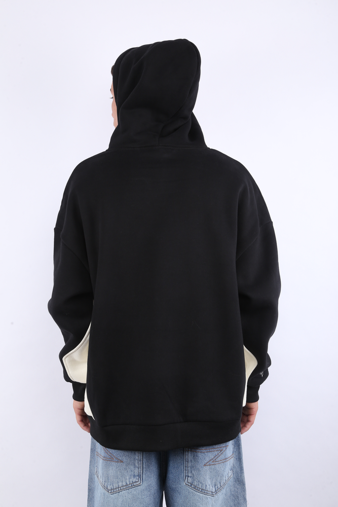 Buzo hoodie. Con recortes a contratrono, en laterales y mangas. Parche con contornos bordados en frente. Detalle bordado a contratono en manga. Avíos personalizados. Etiquetas de marca. FRISA. 60% ALGODÓN - 40% POLIÉSTER.