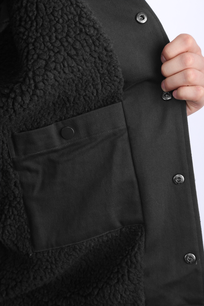 Campera de gabardina abotonada, corte ranglán, con cuello. Ruedo con cordones regulables. Posee forrería tipo corderito. Botones tipo snap. Bolsillos delanteros tipo ojal. Bordado en altura a dos tonos y simple a un tono, en frente. Gofrado en espalda. Avíos personalizados. Etiquetas de marca. EXTERIOR: 100% ALGODÓN. FORRERÍA: 100% POLIÉSTER.