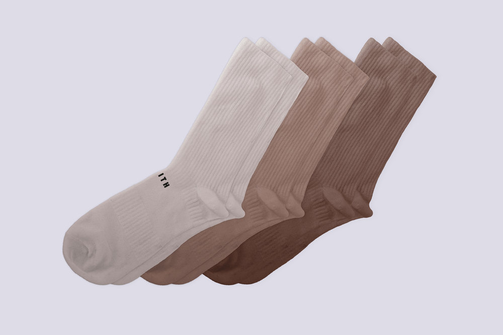 Medias media caña en Tripack con logo, en tonalidades tierra con logo. COMPOSICIÓN: 80% ALGODÓN MEZCLA - 10% POLIÉSTER - 10% SPANDEX.