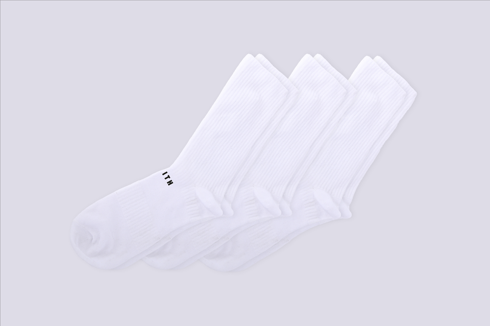 Pack 1: tres pares en blanco, con logo negro.