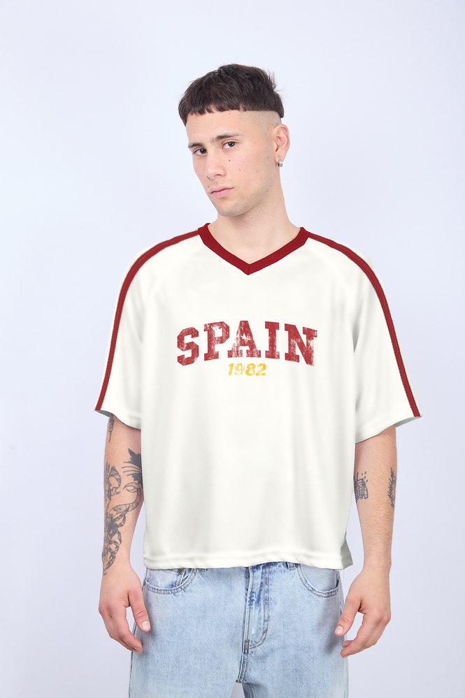 Remera mangas cortas boxy, escote en V.