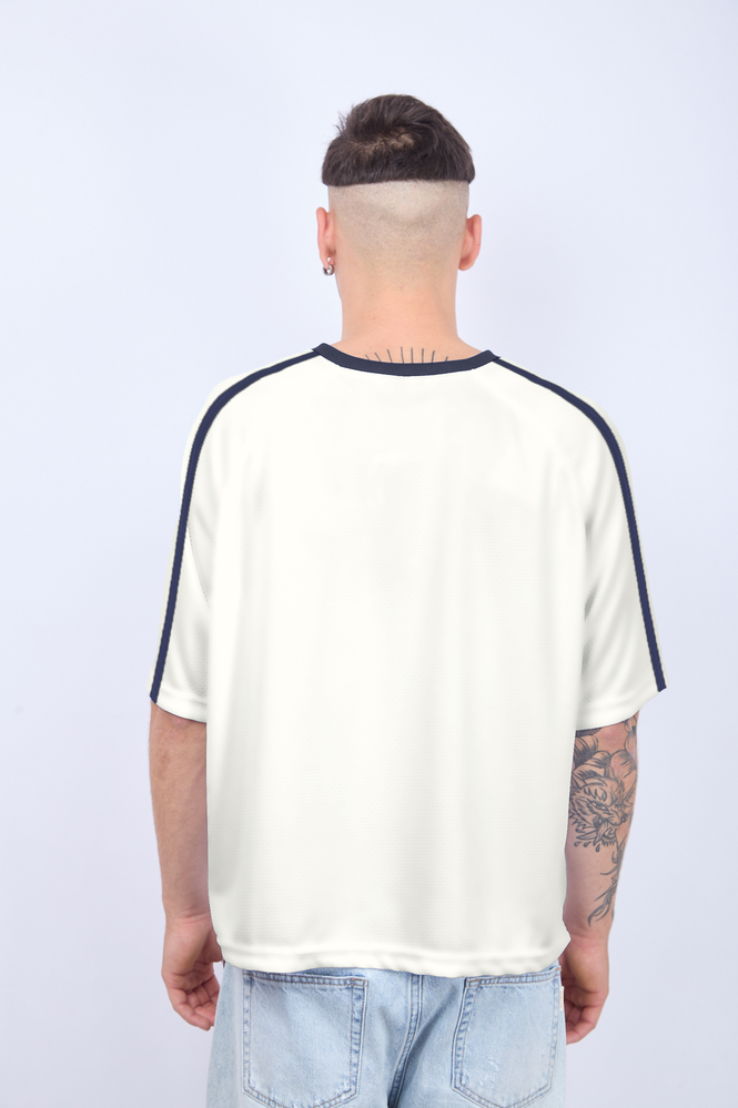 Remera mangas cortas boxy, escote en V.