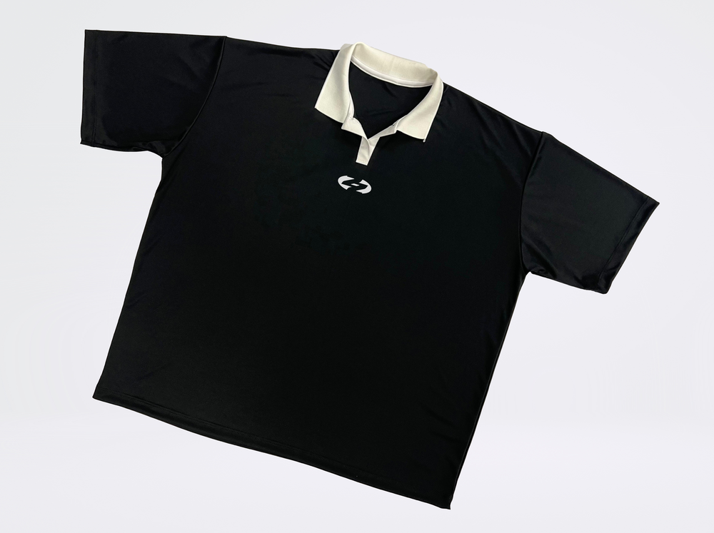 Remera mangas cortas boxy con cuello polo.Tela diferenciada tipo dryfit. Con logotipo en silicona 3D en frente. Estampa en vinilo en espalda.